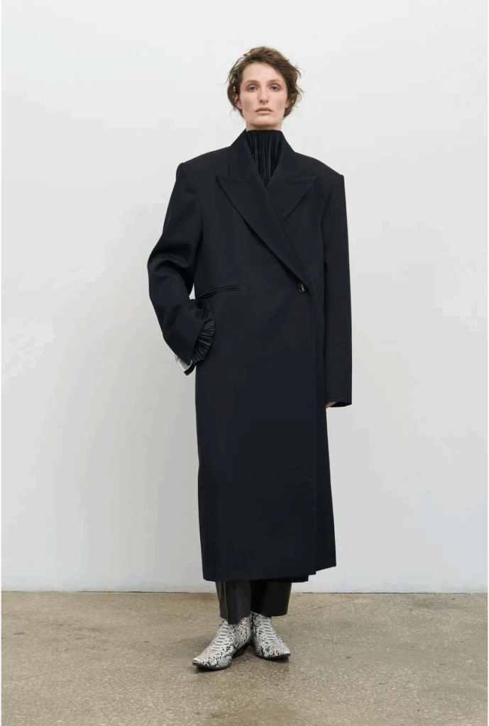- Пальто оверсайз із перебільшеною лінією плеча — тренд, який створює драматичний образ