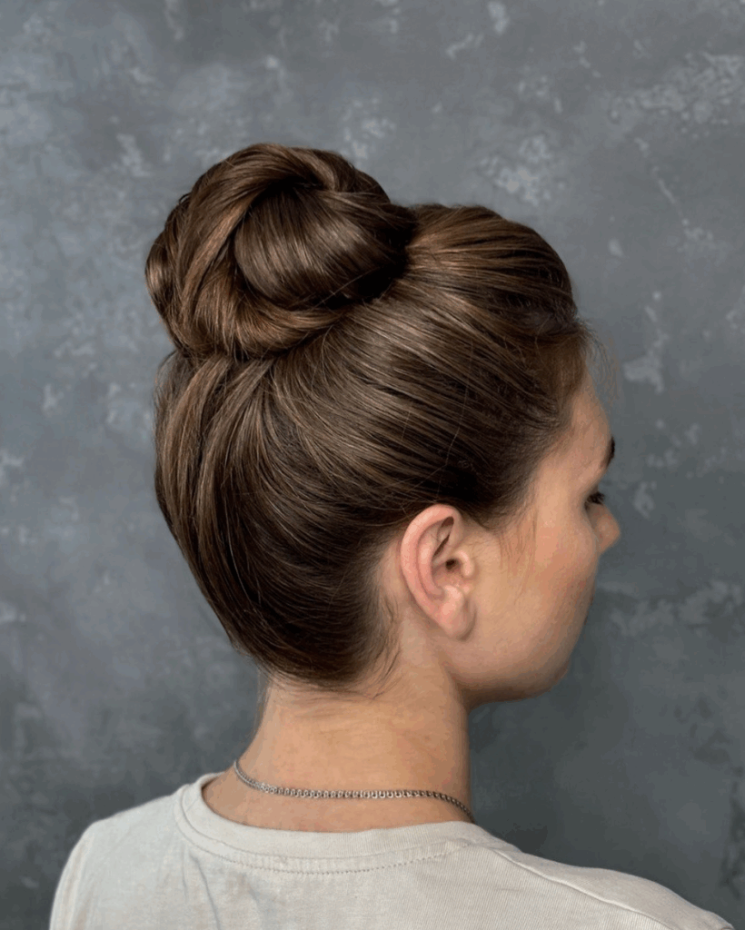 Корисна порада: щоб зачіска виглядала об’ємніше, використовуйте спеціальний «пончик» для пучка. Він створює ідеальну форму та тримає волосся весь день.